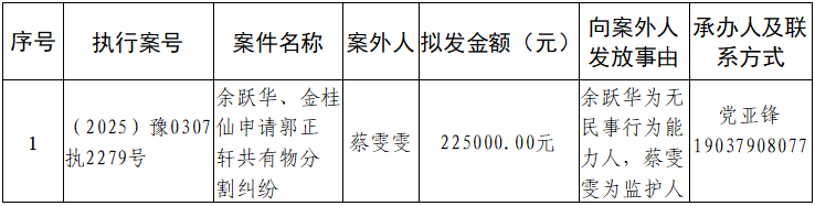 洛阳市偃师区人民法院关于向案外人发放案款案件的公示