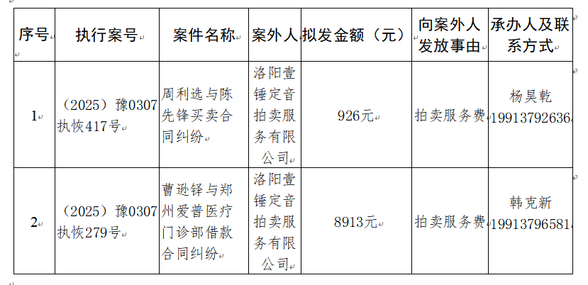 为进一步规范执行案款收发、管理,完善执行案款管理工作,维护当事人合法权益,防患廉政风险,现将河南省洛阳市偃师区人民法院拟向案外人发放的案款公示如下: