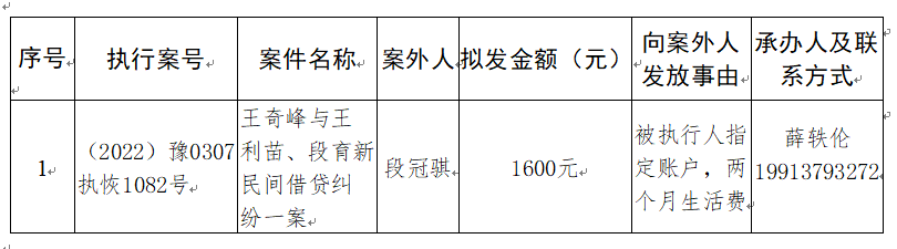 特别提示:公示期满3个自然日后,如无当事人提出异议,则该案款将向案外人发放,监督电话:0379-63157288