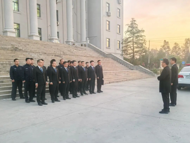 为切实维护司法权威,保障胜诉当事人的合法权益,11月14日清晨,洛阳市偃师区人民法院“护航民生”集中执行行动利剑出鞘。25名干警、10辆警车在院党组成员、副院长高亚飞指挥下,奔赴执行一线。
