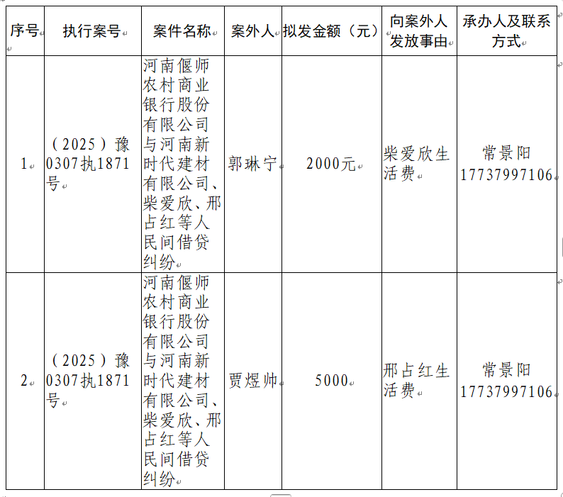 洛阳市偃师区人民法院关于向案外人发放案款案件的公示