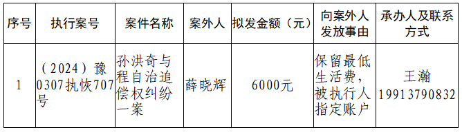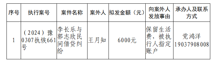 特别提示:公示期满3个自然日后,如无当事人提出异议,则该案款将向案外人发放,监督电话:0379-63157288
