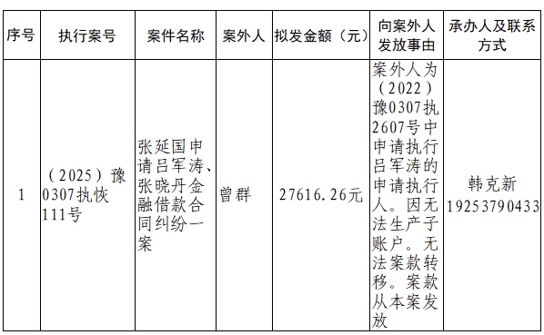洛阳市偃师区人民法院关于向案外人发放案款案件的公示