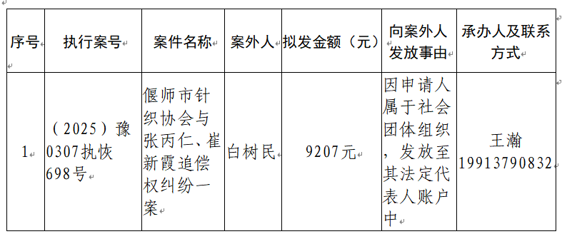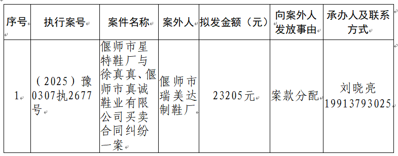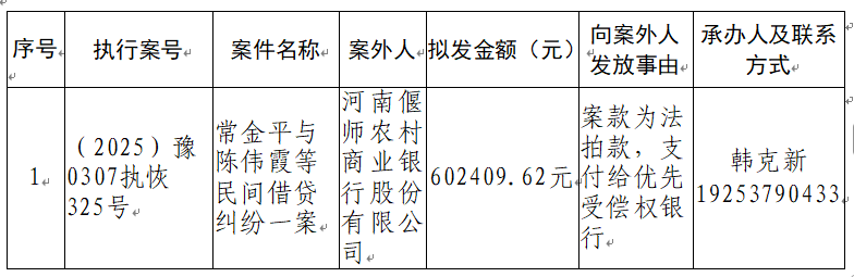 为进一步规范执行案款收发、管理,完善执行案款管理工作,维护当事人合法权益,防患廉政风险,现将河南省洛阳市偃师区人民法院拟向案外人发放的案款公示如下: