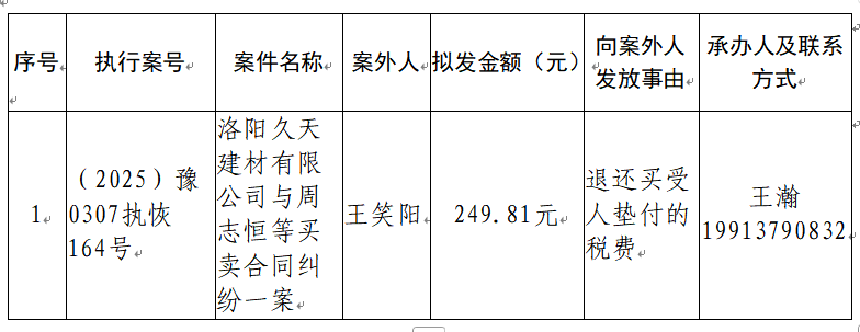 洛阳市偃师区人民法院关于向案外人发放案款案件的公示