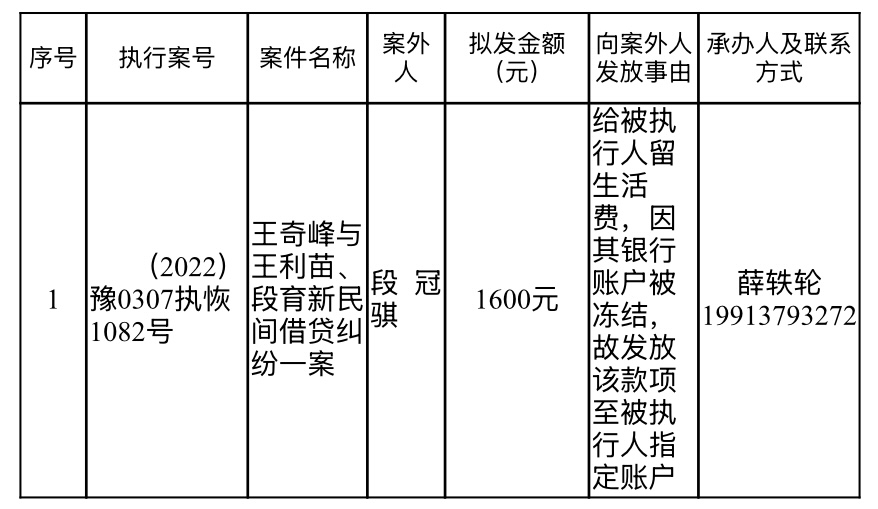 为进一步规范执行案款收发、管理,完善执行案款管理工作,维护当事人合法权益,防患廉政风险,现将河南省洛阳市偃师区人民法院拟向案外人发放的案款公示如下: