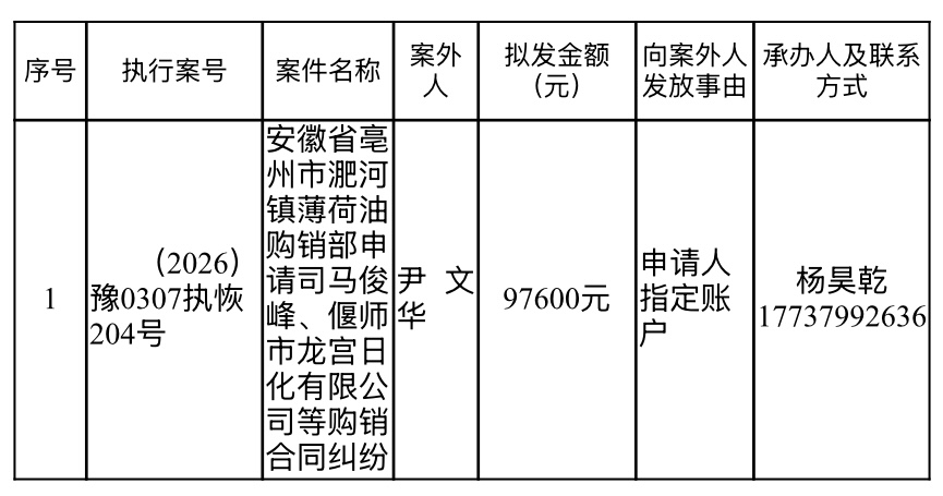 为进一步规范执行案款收发、管理,完善执行案款管理工作,维护当事人合法权益,防患廉政风险,现将河南省洛阳市偃师区人民法院拟向案外人发放的案款公示如下: